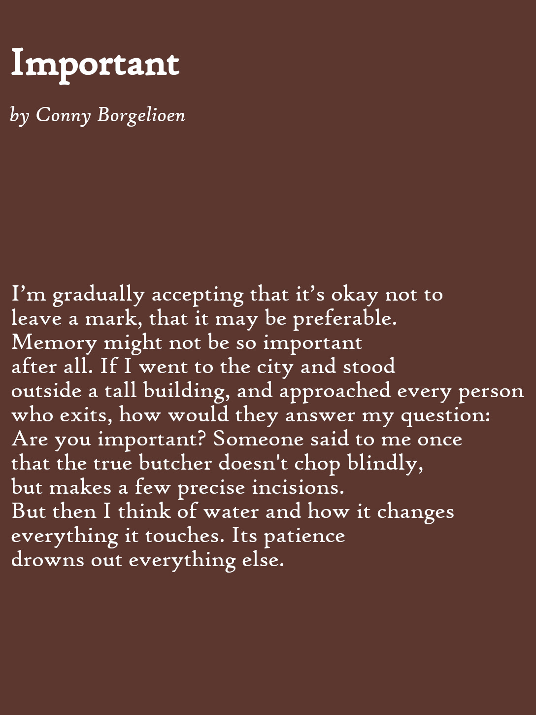 I do try so hard to make my pages appealing. Despite what this poem below says… I just want to feel like what I do and give to the world matters somehow. But I guess that’s only human.